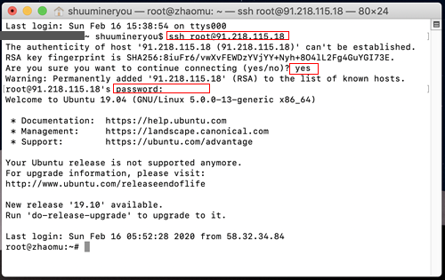 Next, the system will prompt whether to continue the connection. Type yes and press Enter, then enter the remote password. If the password is correct, you can enter the cloud server for management.