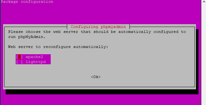 When prompted to select a web server, choose apache2 as shown in the screenshot.