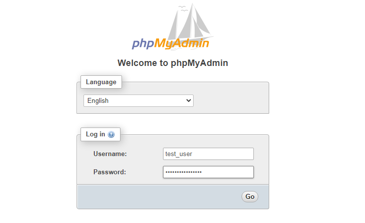 Access the phpMyAdmin management address: http://192.0.2.1/phpmyadmin, and enter the username and password created earlier.