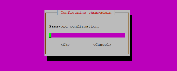 Enter a complex password for the phpMyAdmin database, press Tab, and then Enter to move to the next step.