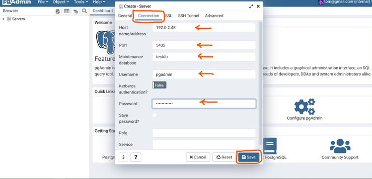Access the pgAdmin management address, for example: http://192.0.2.48/pgadmin4, and log in using the email address and password provided earlier.